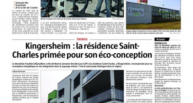 Le deuxième Trophée GAZosphère a été attribué la semaine dernière par GrDF à la résidence Saint-Charles de FL Résidences, à Kingersheim, récompensée pour sa conception énergétique et son intégration dans le paysage urbain.