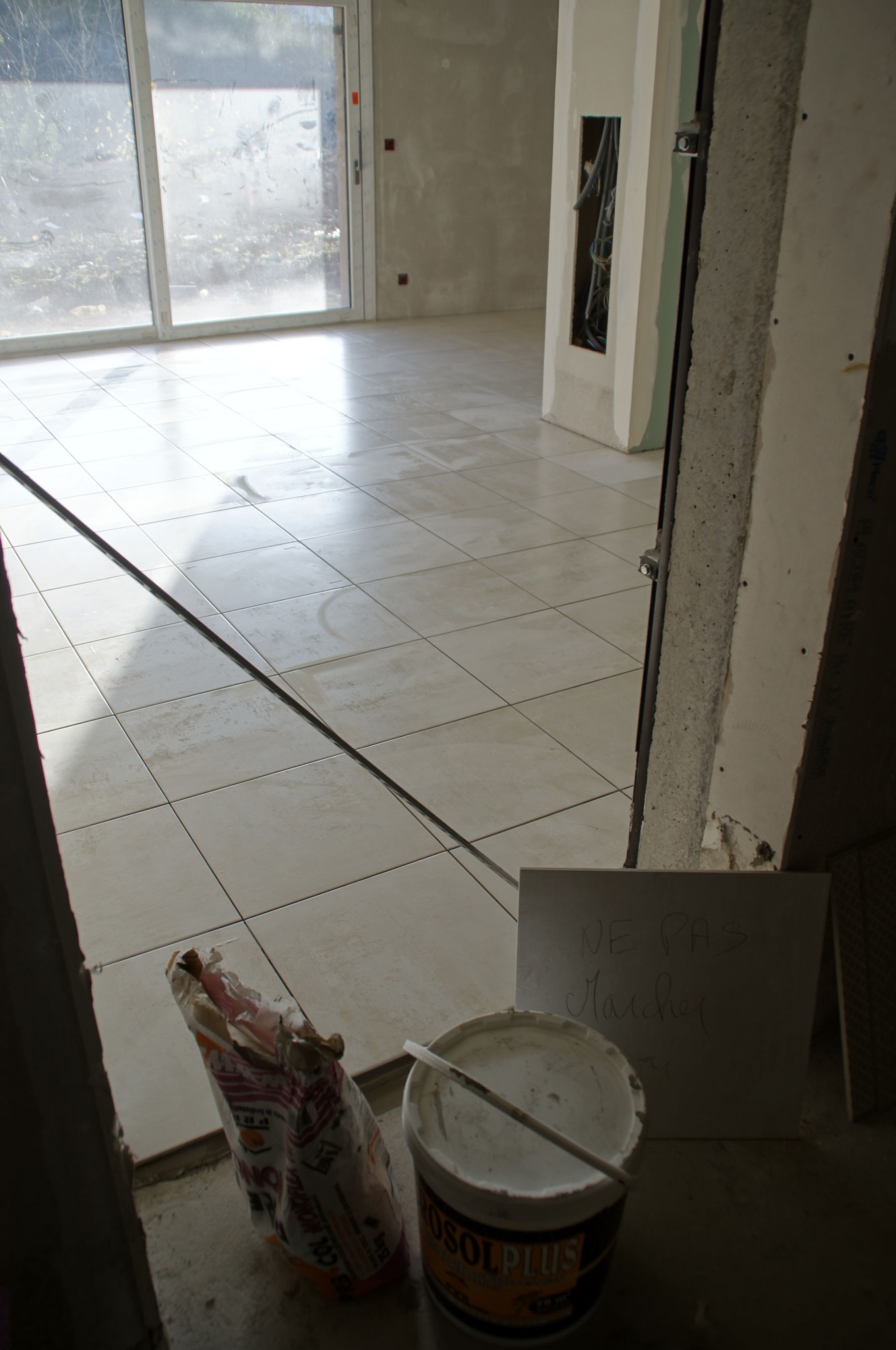 Le carrelage des sols est en cours